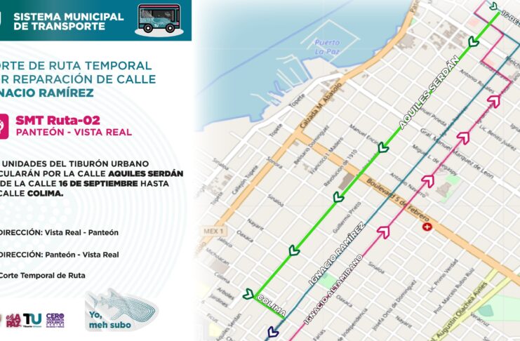 La Paz.-Las obras de pavimentación que se realizan en la calle Ignacio Ramírez, en el tramo comprendido entre Melchor Ocampo y Colima, generaron un ajuste temporal en el recorrido de una de...