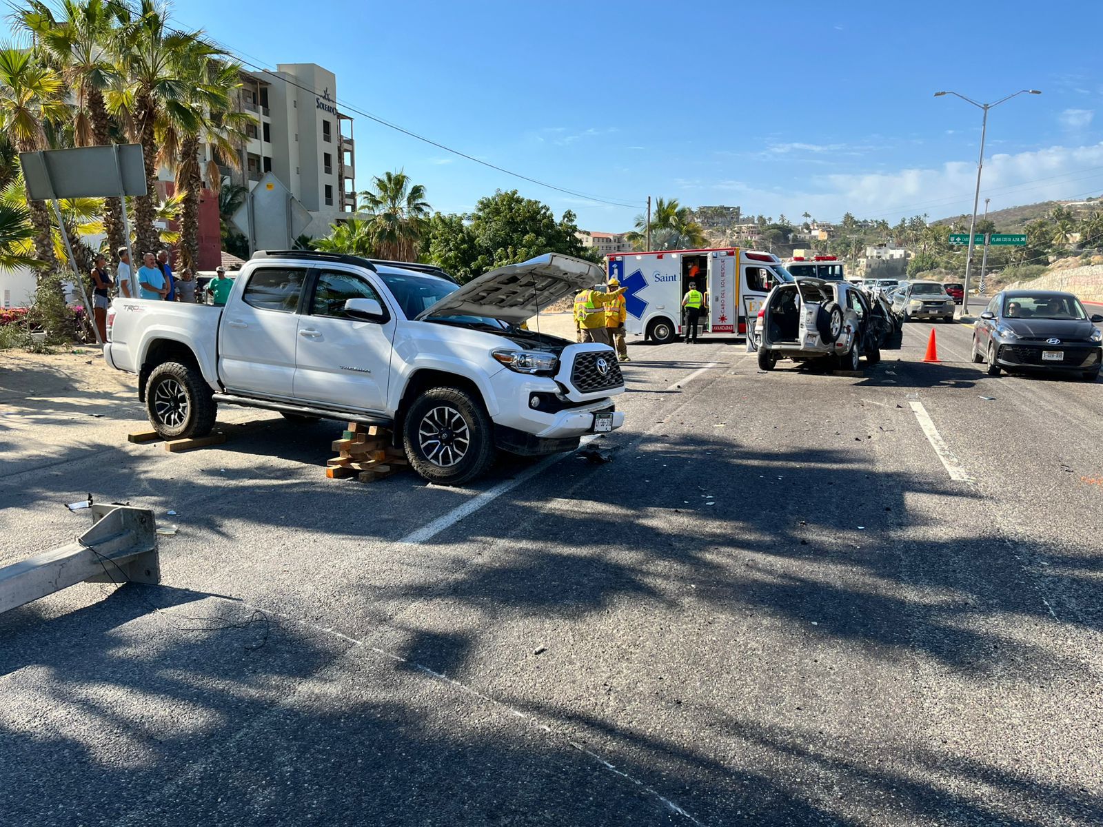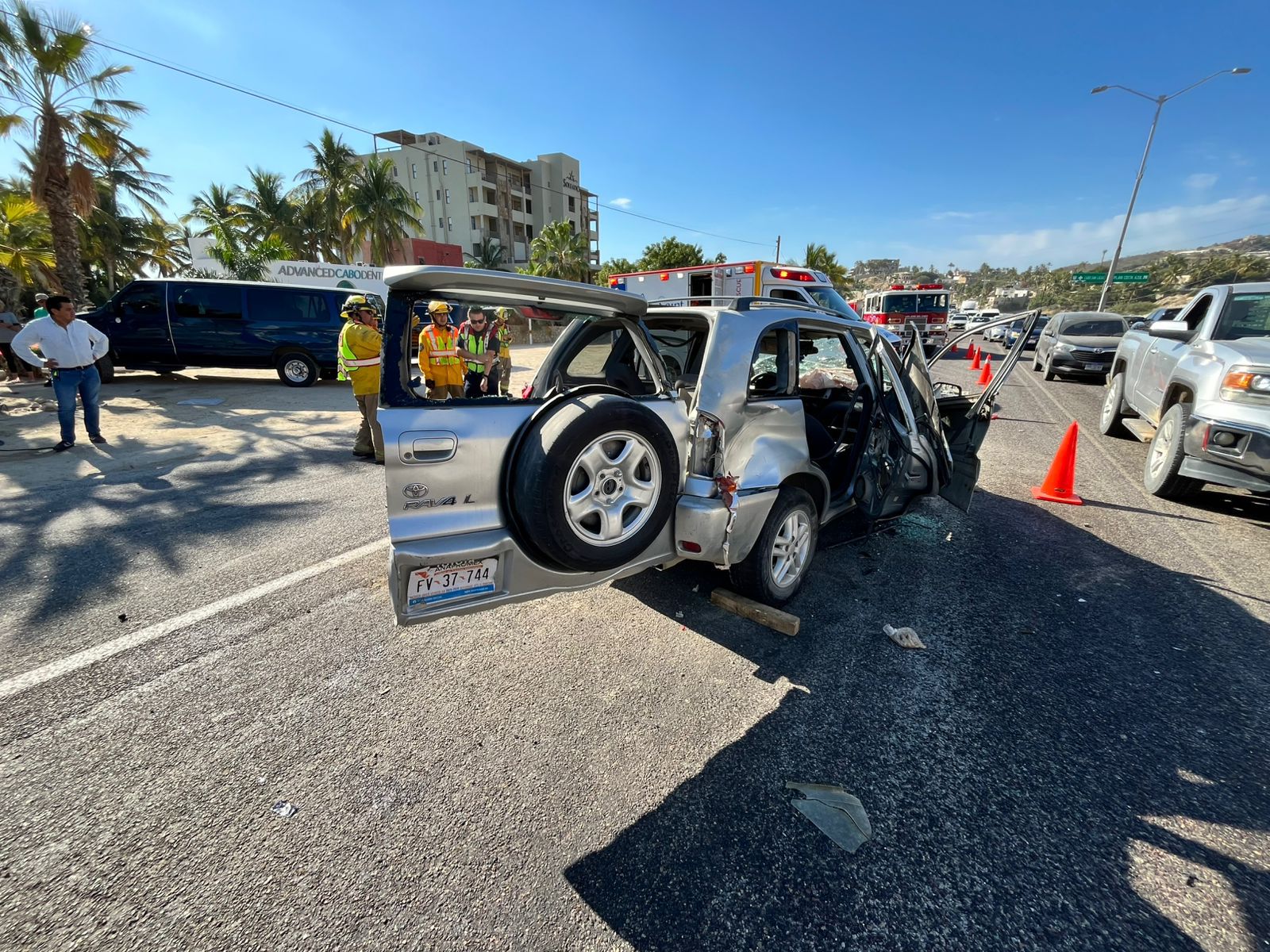 Al lugar, acudió la unidad M-15 del Departamento de Bomberos de San José del Cabo, así como una unidad médica prehospitalaria de la Cruz Roja Mexicana y otra más de Saint Luke’s, también se contó con la presencia de la Guardia Nacional.