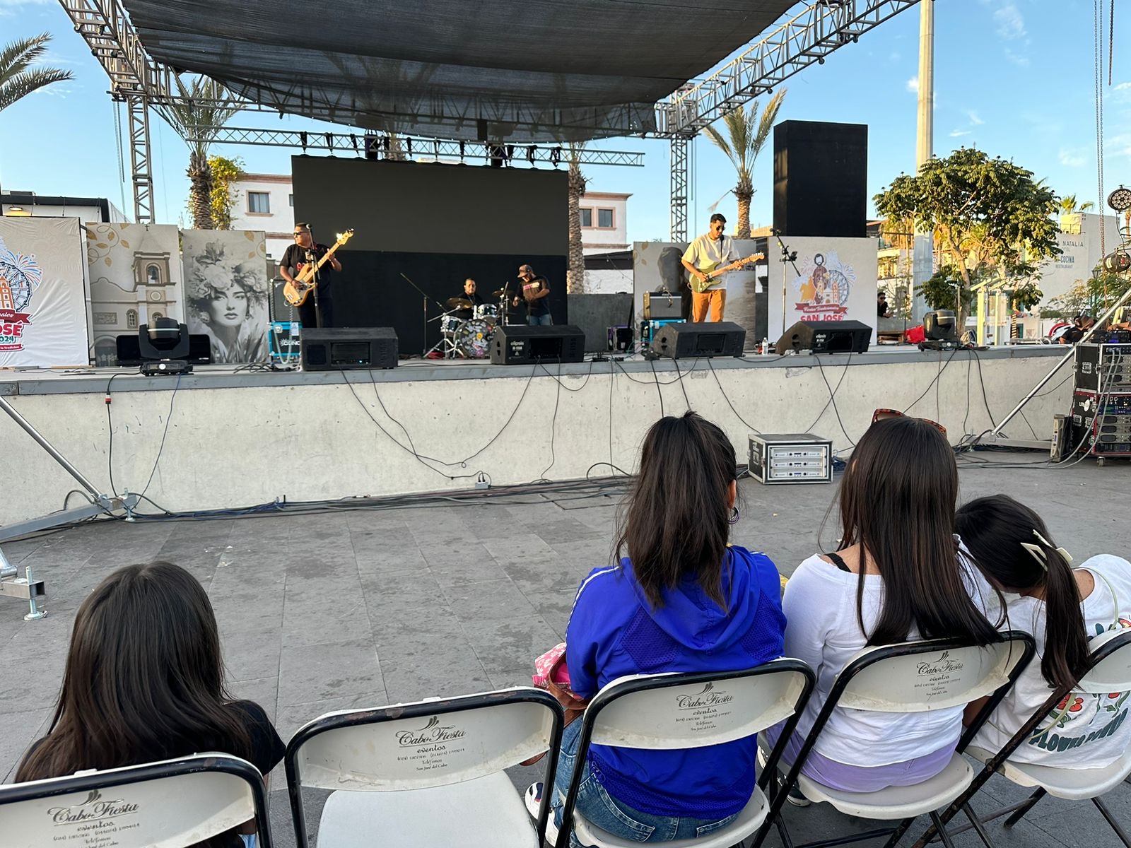 Mijares presenciando un programa cultural y musical, en total fueron 6 bandas locales las