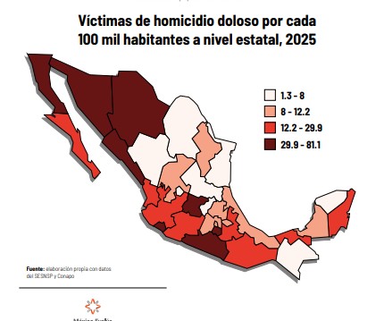 El estudio, que analiza de manera conjunta distintos indicadores de violencia letal, advierte que, aunque a nivel nacional se reportan reducciones recientes, los niveles estructurales siguen siendo altos y heterogéneos entre entidades.