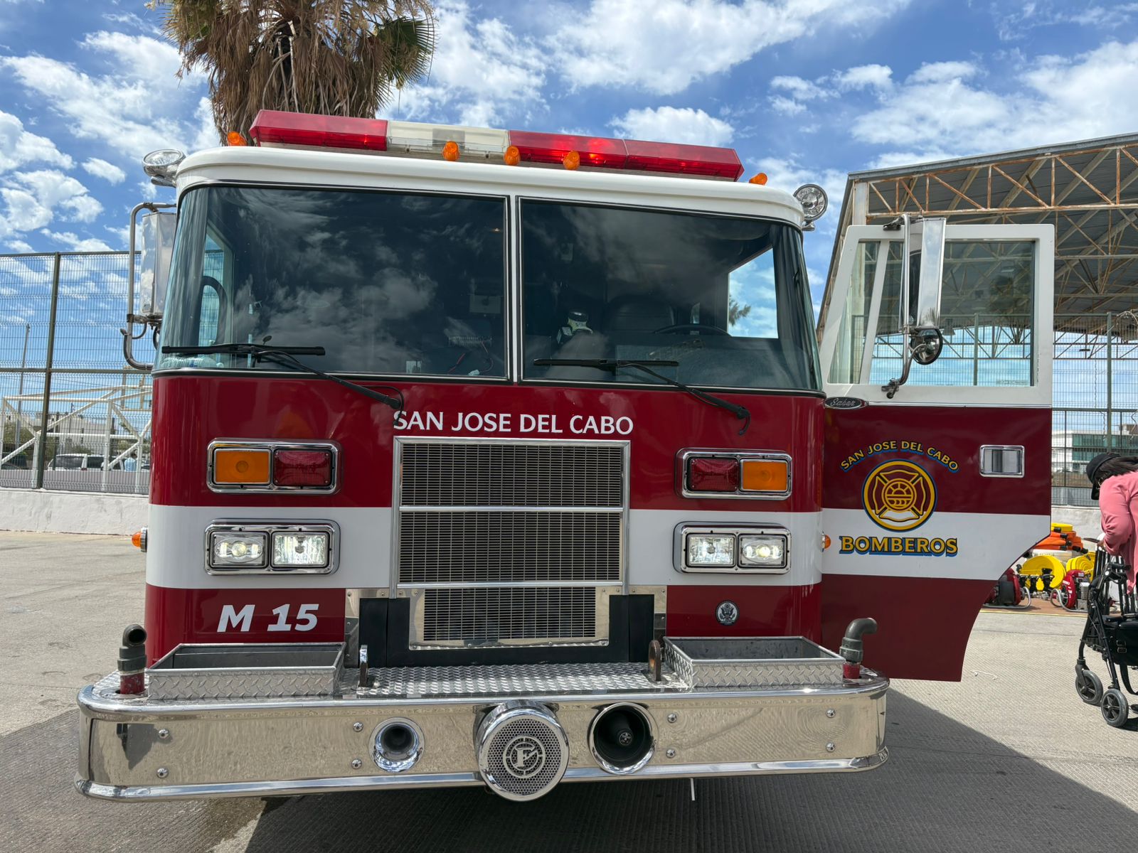 Se trata de un camión extintor nuevo que fue donado por el Cuerpo de Bomberos de Santa Cruz, California; un equipo de mangueras que fue entregado por el Ayuntamiento de Los Cabos, tres bombas contras incendios, tinas y repartidores que fueron dotados por el Grupo Questro.