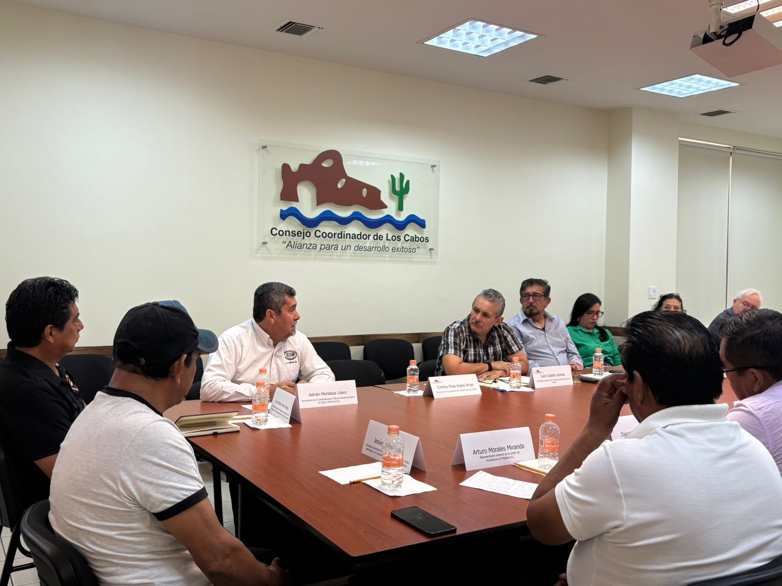 El Consejo Coordinador de Los Cabos (CCC) sostuvo una reunión esta semana con líderes de cámaras empresariales como CANACO, CANIRAC, y representantes de vendedores ambulantes formales que operan en la playa El Médano en Cabo San Lucas, con el objetivo de establecer acuerdos respecto al ordenamiento en la zona.
