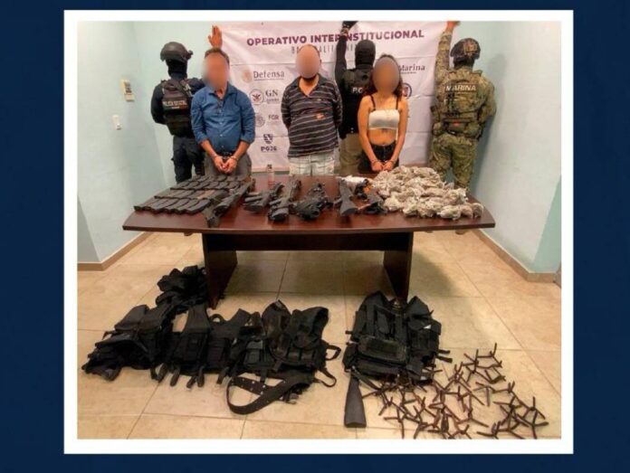 Durante el despliegue, las fuerzas de seguridad detuvieron a Citlali “N”, Abelardo “N” y Misael “N”, asegurando un importante arsenal y diversas dosis de droga.
