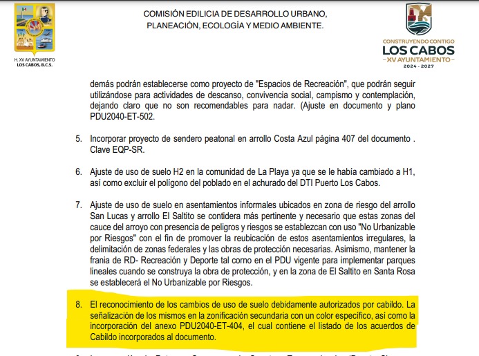 Pues bien, en la tercera actualización del PDU aprobado por el XV Ayuntamiento de Los Cabos, esos posibles actos de corrupción o que simplemente han contribuido al caos de desarrollo urbano que hoy vive Los Cabos, quedaron legitimados.
