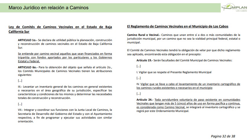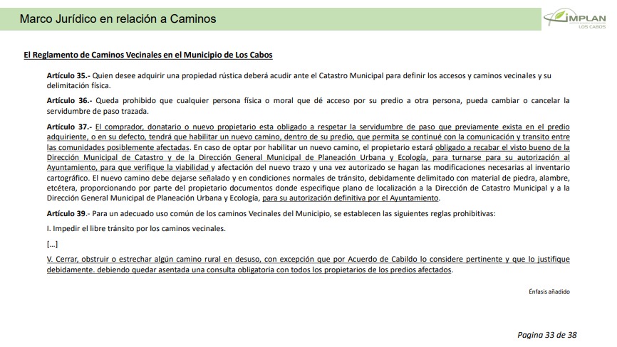 Y que ¿creen?, la ley si lo marca en el “El Reglamento de Caminos Vecinales en el Municipio de Los Cabos”.