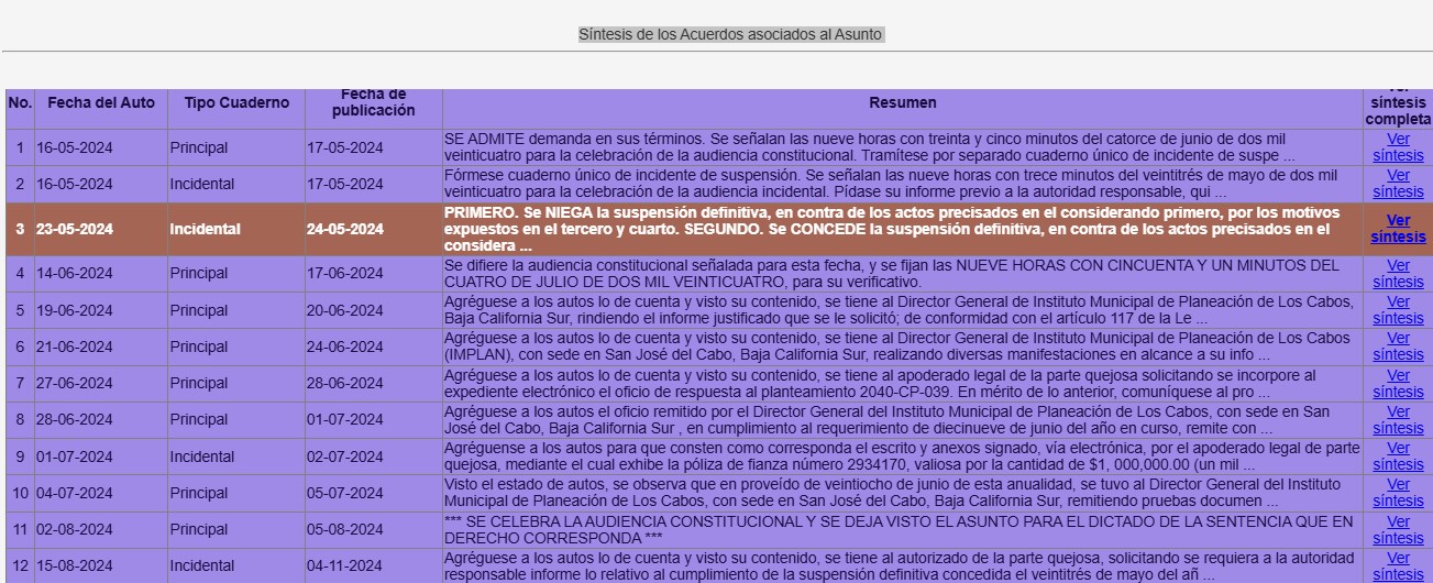 Hoy, gracias a la información pública del Juzgado Primero de Distrito en el Estado de Baja California Sur se puede conocer que LO DE LA SUSPENSIÓN DEFINITIVA SE DIO DENTRO EL MISMO PROCESO DEL JUICIO DE AMPARO Y QUE FUE CONCEDIDA EN JUNIO DE 2024 TRAS EL PAGO DE UNA FIANZA DE 1 MILLÓN DE PESOS.