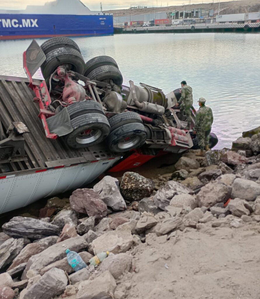 Un camión terminó dentro del mar la tarde del 19 de enero de 2026 en la zona de Playa Pichilingue, a la altura del área operada por API-BCS y Baja Ferries, lo que generó movilización policial y alertó a trabajadores y automovilistas del sector.