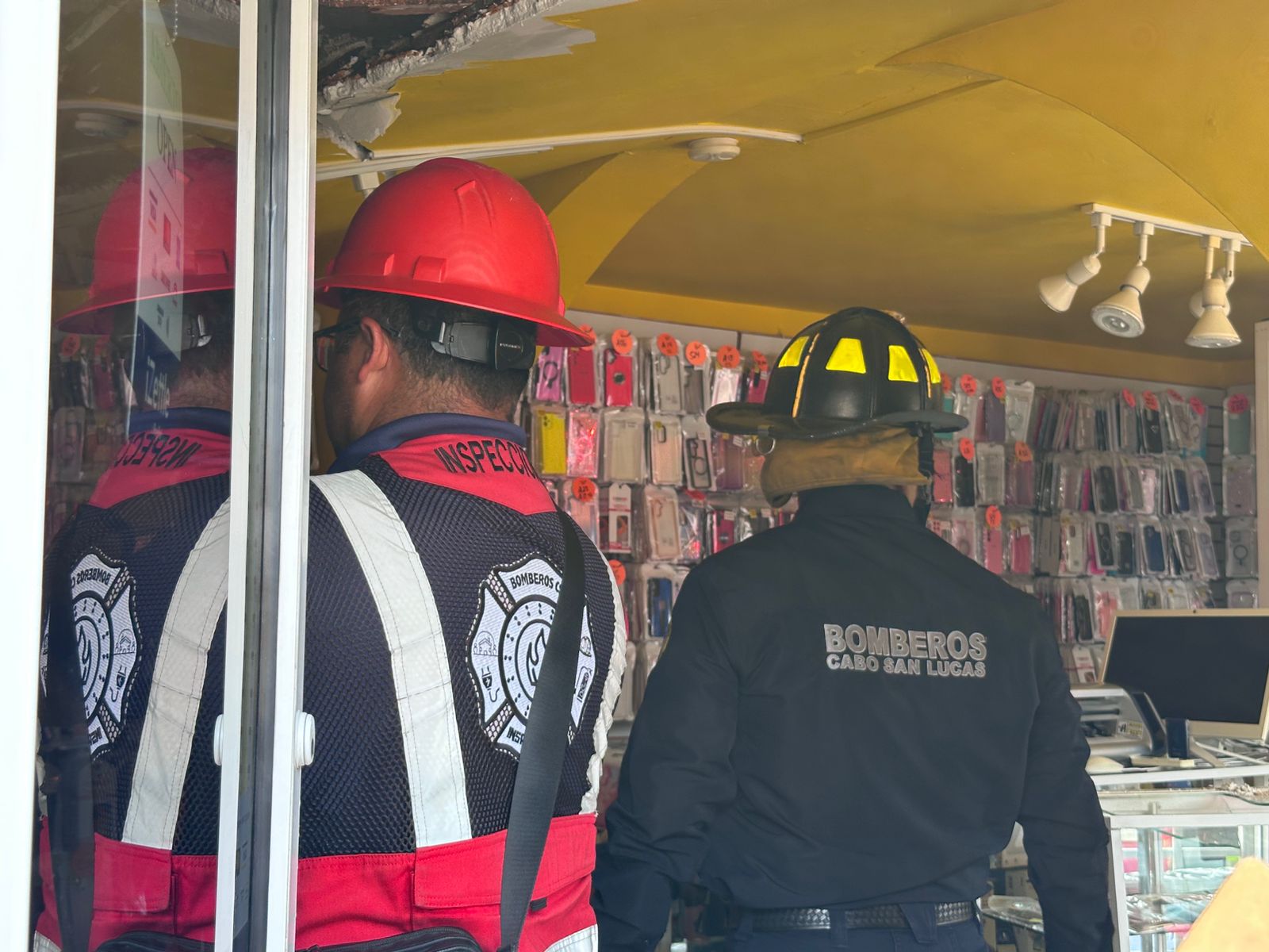 Minutos después de las 10 de la mañana se reportó al Cuerpo de Bomberos y Rescatistas de Cabo San Lucas el colapso del techo de un comercio en la zona centro de la delegación sanluqueña.