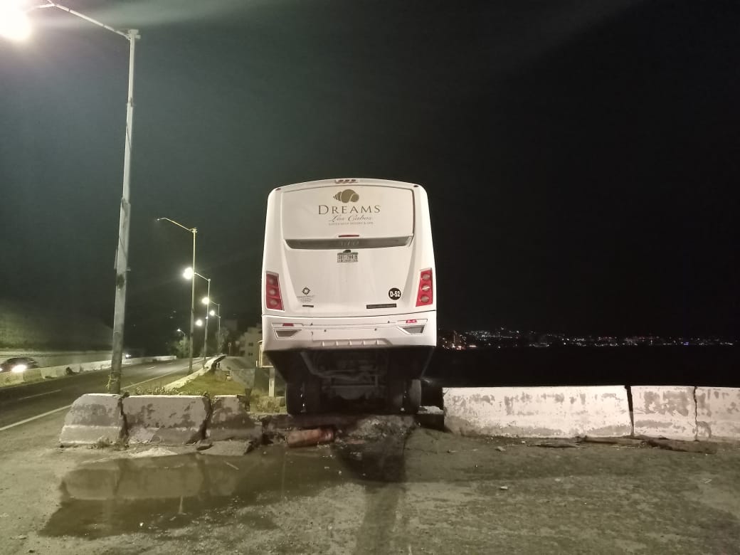 Un camión del hotel Dreams quedó a punto de caer al barranco del mirador de Costa Azul en San José del Cabo la madrugada de este jueves 9 de noviembre.
