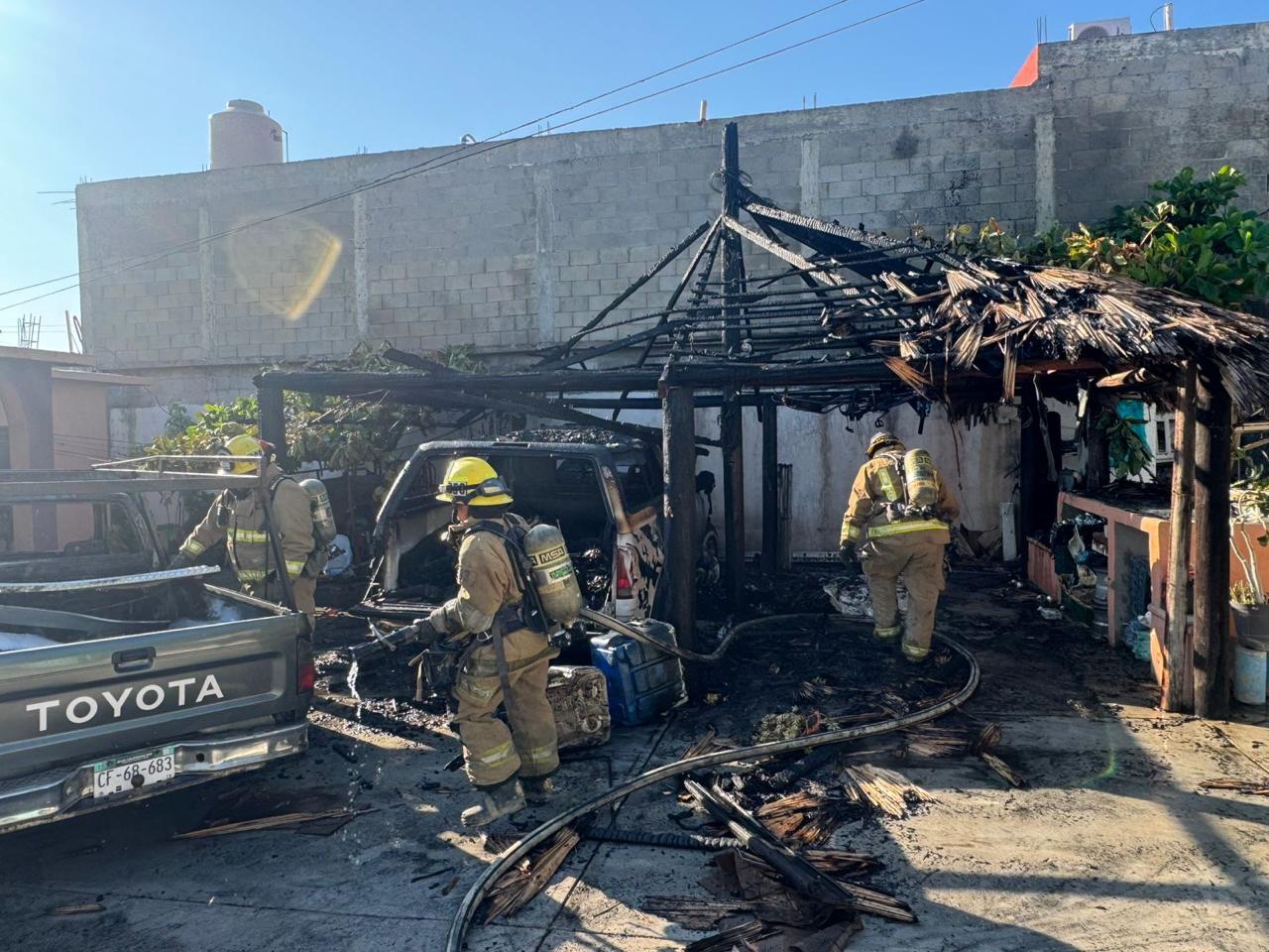 San José del Cabo, BCS.– La mañana de este viernes, alrededor de las 07:35 horas, el Cuerpo de Bomberos atendió un incendio registrado en el interior de un domicilio particular en la colonia El Zacatal, donde resultaron afectados dos vehículos y una palapa.