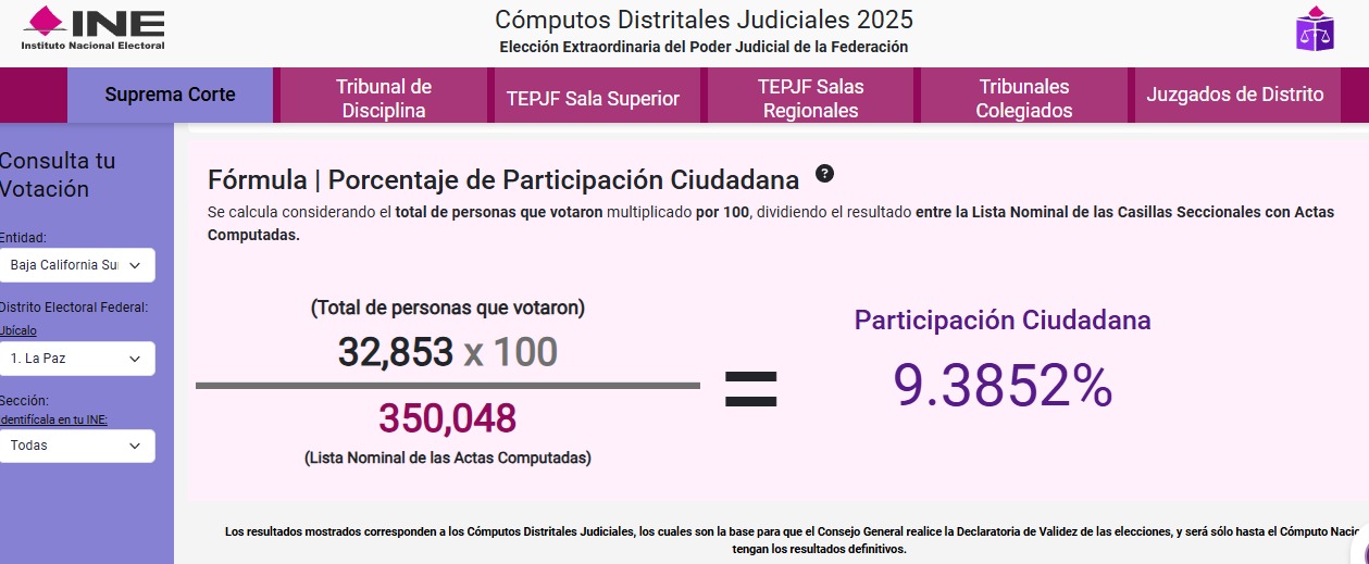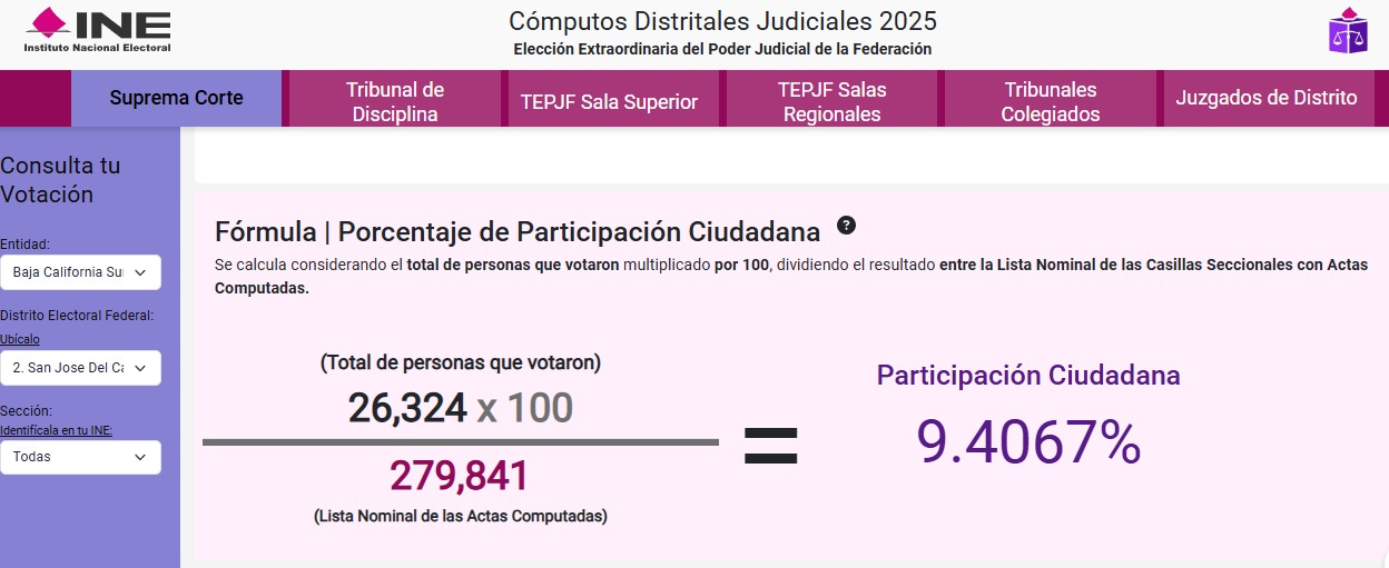 Todo el aparato oficial en manos de los tres grupos políticos se movilizó para la elección judicial y no lograron que más del 10% del electorado saliera a votar por jueces, magistrados y ministros, cuando en la última elección local 2024, el promedio de participación fue del 50%.