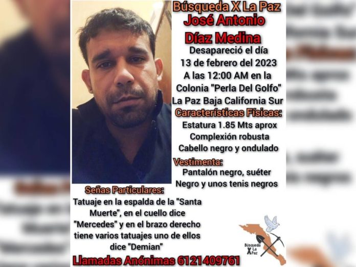 Minutos más tarde, elementos de seguridad confirmaron que se trataba de un hombre que tenía reporte de desaparición, de nombre José Antonio Díaz Medina, visto por última vez en la colonia Perlas del Golfo, en La Paz.