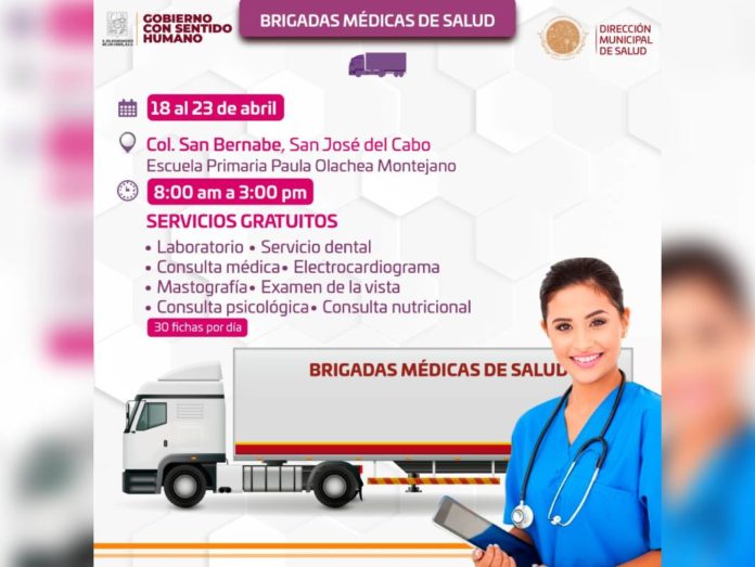 Los Cabos, B.C.S., 16 abril 2022.- Con el objetivo de evitar la saturación de los hospitales del municipio, -al tiempo que se garantiza el bienestar y la salud de la ciudadanía cabeña-, el Gobierno de Los Cabos, a través de la Dirección Municipal de Salud, pone a disposición de los habitantes de San José del Cabo la unidad móvil de las Brigadas Médicas de Salud, la cual estará del lunes 18 al sábado 23 de abril en la colonia San Bernabé en San José del Cabo, así lo dio a conocer el director municipal de Salud, Dr. Juan Carlos Costich Perez.