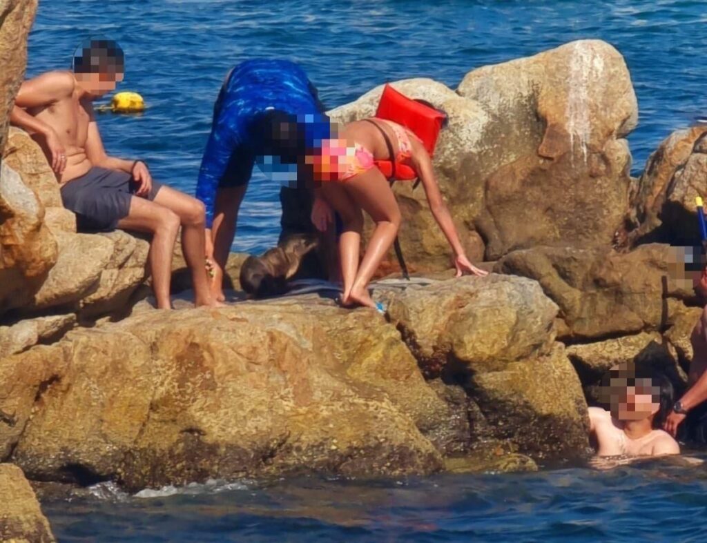 Cría de lobo marino siendo acosada por turistas en Cabo San Lucas. Créditos: APFF