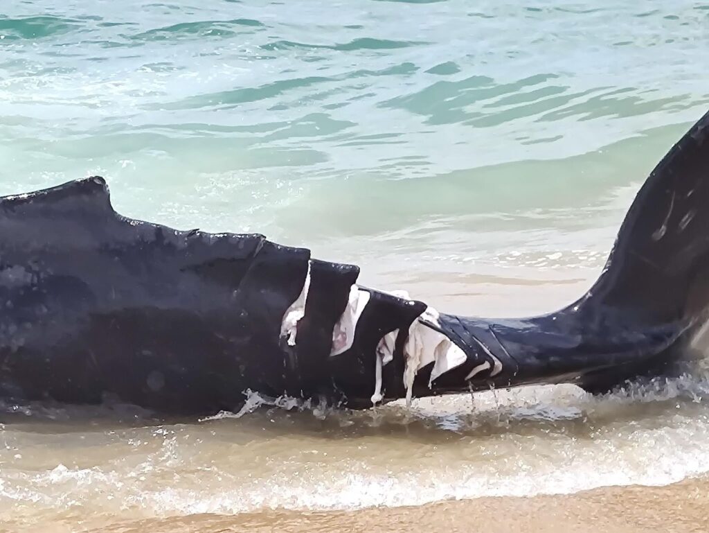 Ballena muerta en las costas de Cabo San Lucas con heridas de propelas. Créditos: Carlos Villalobos.