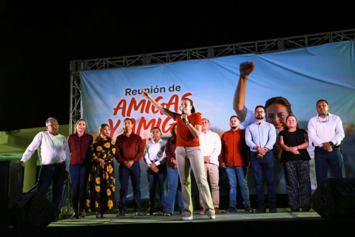 Pero el evento político principal fue el denominado “Reunión de Amigas y Amigos” realizado en predio al aire libre en Cabo San Lucas, donde en el templete se colocó una manta, que además del nombre del evento exhibía la imagen de la propia Milena con el puño en alto y del que la propia alcadesa paceña escribió en sus redes: