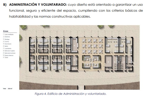 incipales del proyecto se incluyen un centro educativo, edificio administrativo, zona de investigación y laboratorio, clínica veterinaria, aviarios, bioterio, granero, hábitats controlados y áreas para reproducción de especies, además de infraestructura de apoyo como estacionamiento y accesos.