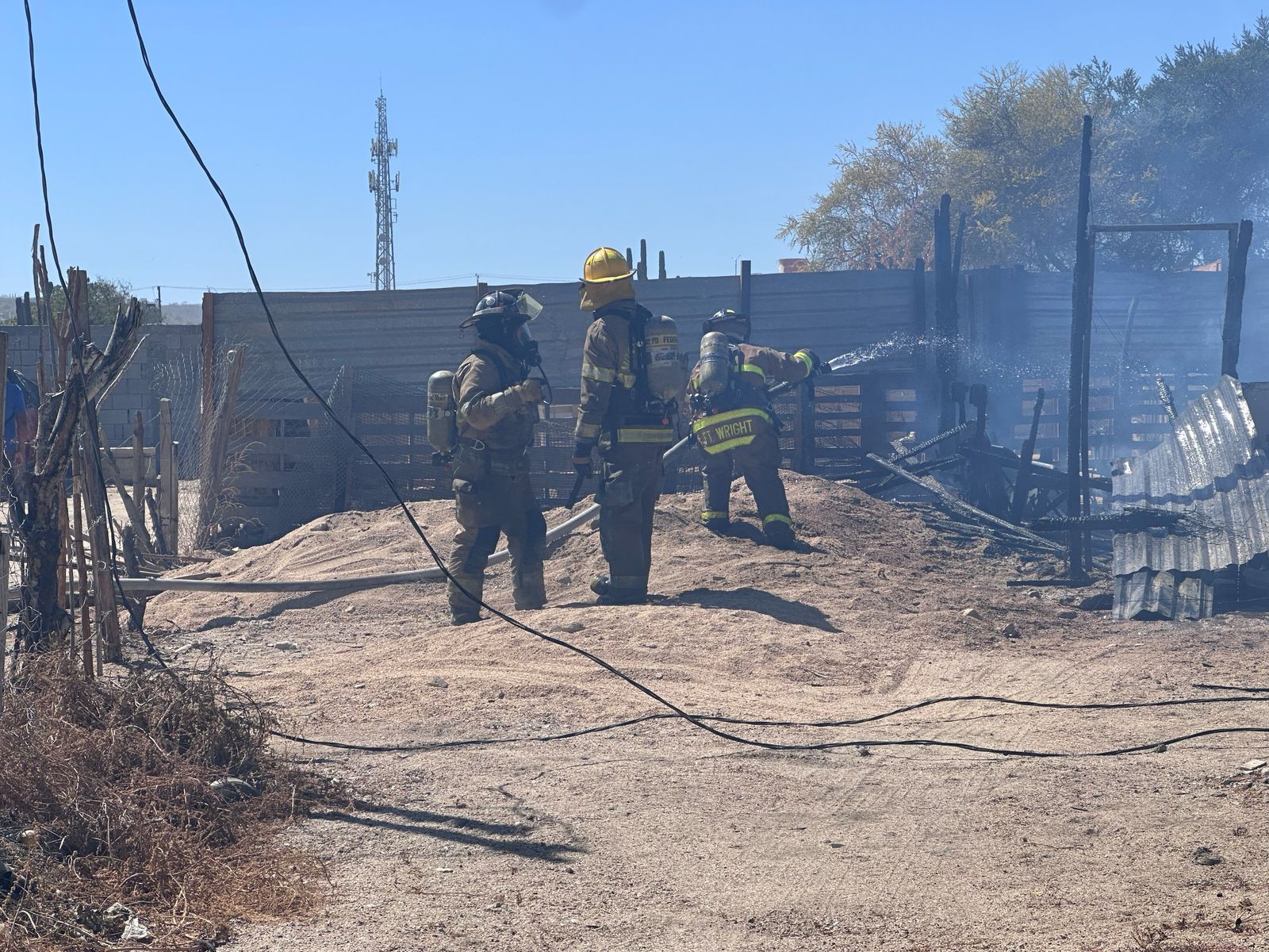 Las unidades de emergencia del Cuerpo de Bomberos de Cabo San Lucas atendieron un incendio tipo casa habitación que consumió una vivienda y dañó otras dos en el asentamiento irregular Vista Azul.