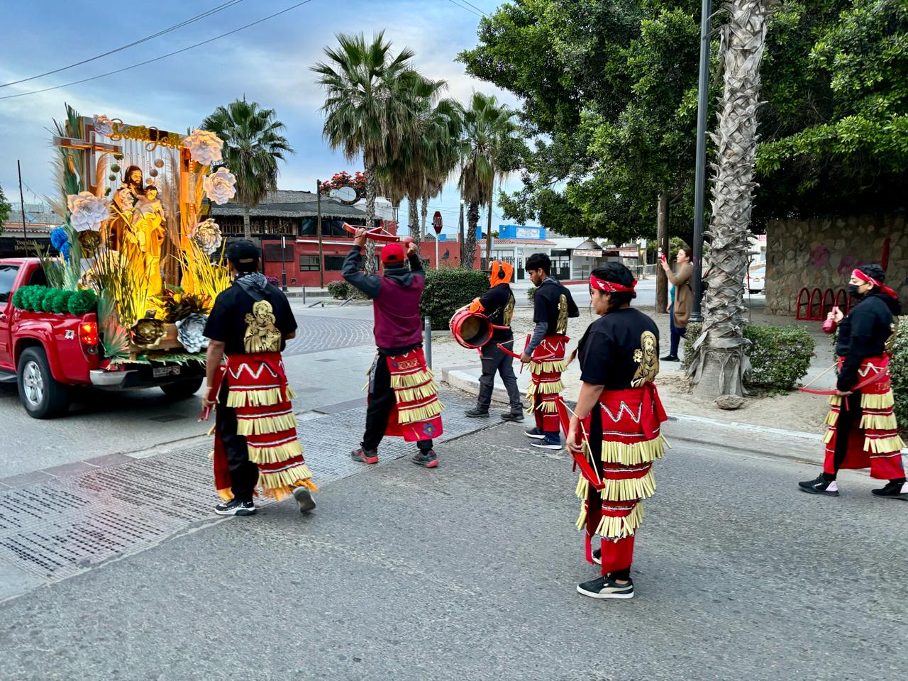 interpretando las mañanitas y canciones festivas con rumbo a la Misión, donde esperaba