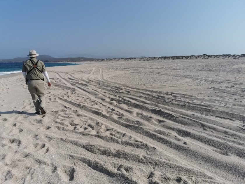 Describió que recientemente encontraron la playa Punta Arena en La Ventana, Baja California Sur con rodadas de carro justo en el espacio donde anida el Gallito Marino y algunas especies de torturas. Además, no sólo no se respetan las señalizaciones, sino que, las destruyen.