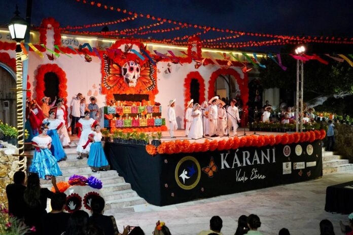 Los Cabos, Baja California Sur.– En el marco del Festival Mar de Ofrendas, el XV Ayuntamiento de Los Cabos, que encabeza Christian Agúndez Gómez, en coordinación con San Agustín International School, llevó a cabo el Festival Karani: “Vuelo Eterno” en la plaza pública Amelia Wilkes Ceseña, una colorida celebración dedicada al Día de Muertos que llenó de vida, arte y tradición el corazón de Cabo San Lucas.