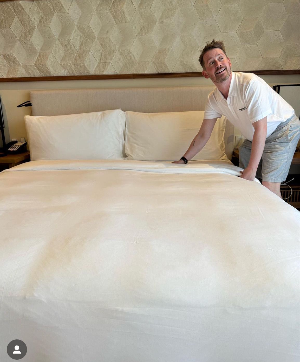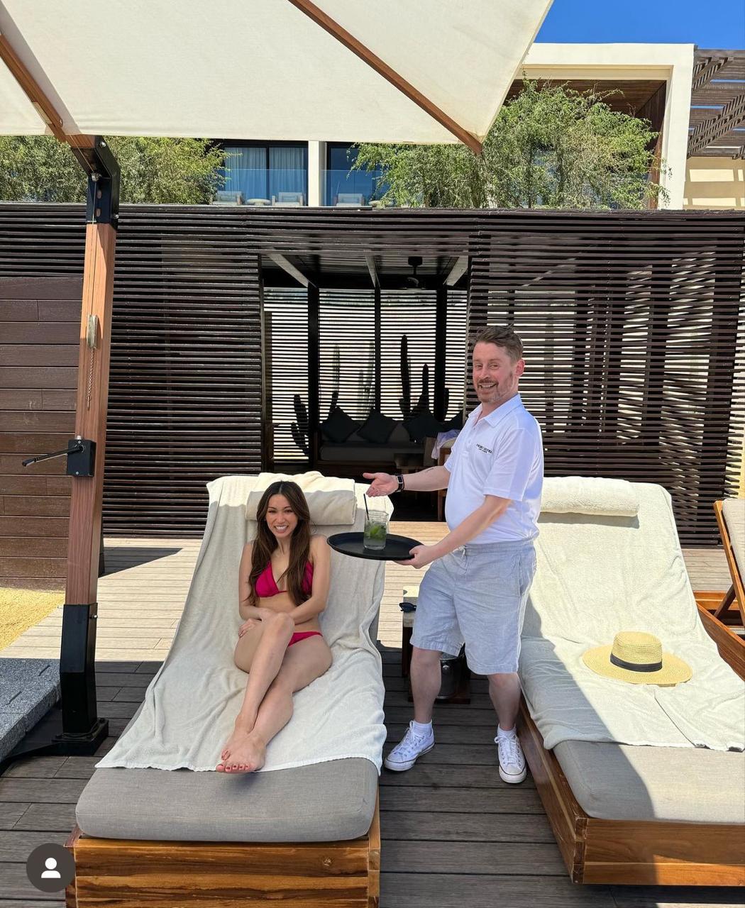 Acostumbrados a su humor, Macaulay compartió una pequeña historia en la que decía que se encontraban en el resort celebrando el cumpleaños de su esposa y que en el primer día, habían ido a la tienda de regalos donde se compró una camiseta, pero oh sorpresa!!!, esta lo hacía parecerse al personal del hotel, por lo que no pudo evitar tomarse algunas fotos como si fuera parte del personal del lugar de hospedaje. Esto hizo su historia aun más graciosa.