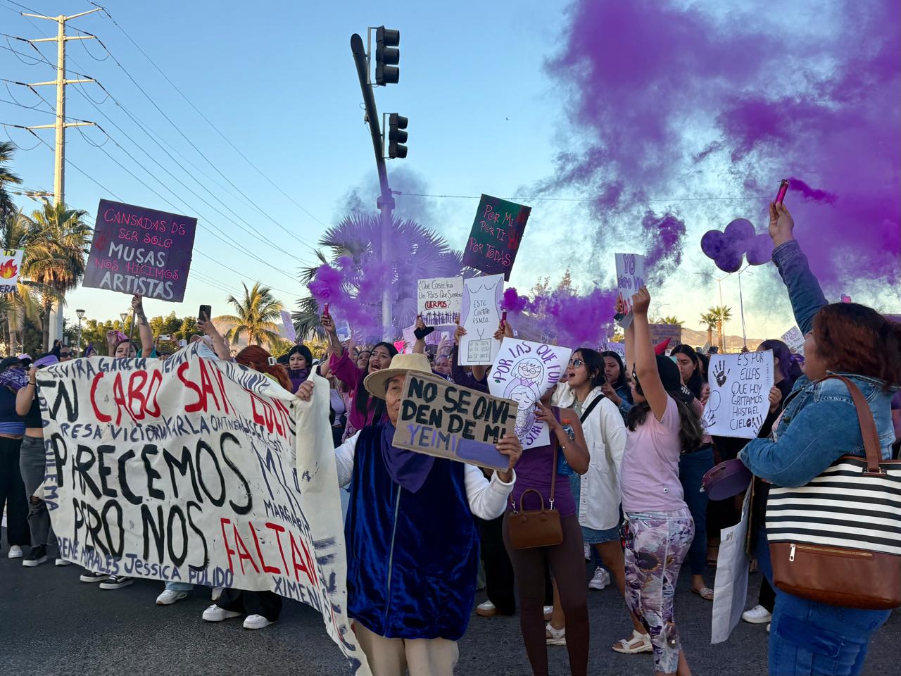 Este 8 de marzo “Día Internacional de las Mujeres” las calles de Cabo San Lucas se inundaron de los colores morado y verde al grito de “No estamos todas, nos falta Yeimi”. Un contingente de más de 200 mujeres salió desde el Pabellón Cultural de la República a fin de protestar por sus derechos y exigir justicia para con casos de violencia extrema en Los Cabos.