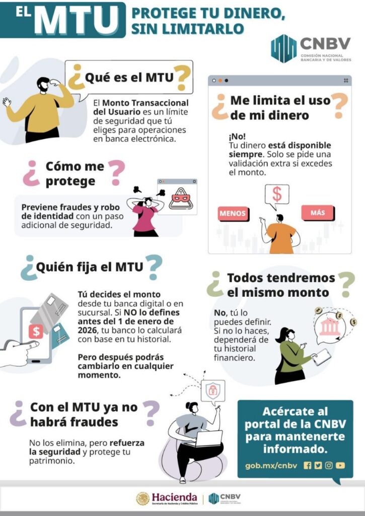 Ciudad de México.– A partir del 1 de octubre entró en vigor el Monto Transaccional del Usuario (MTU), una medida de seguridad que aplicarán los bancos en México para operaciones realizadas en banca móvil y en línea.