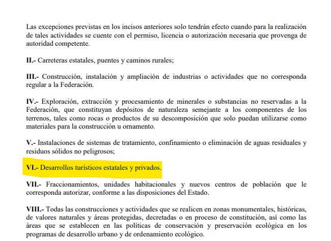 Para tales efectos, el reglamento marca como obligados a presentar dicha autorización en materia de impacto ambiental a “Desarrollos turísticos estatales y privados”.