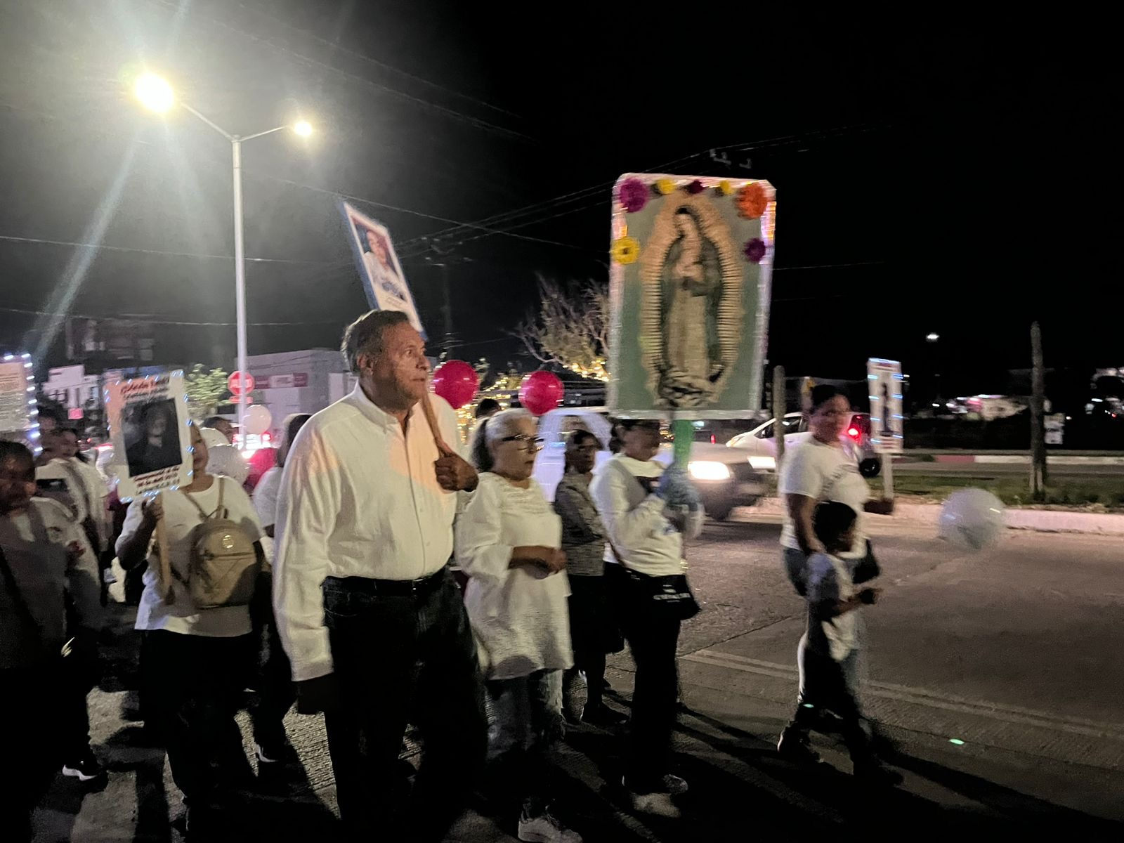 En esta ocasión, sumaron a la exigencia su fe por la Virgen de Guadalupe, con una figura colocada en un vehículo tipo pick up que avanzó por delante del camino, abriéndole el paso a familiares de las personas desaparecidas hacia el Santuario.