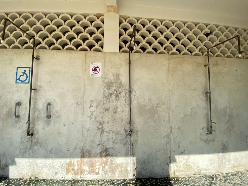 El agua potable es otro factor que juega en contra a las y los bañistas. En la entrada de los baños formales y de las regaderas, hay un letrero con la leyenda: “Tandeo de agua miércoles y jueves”. Se abrieron las llaves de la regadera pero sólo salió aire. A pesar de que se anuncia un tandeo, los visitantes han reportado que en otros días tampoco hay agua en las regaderas.