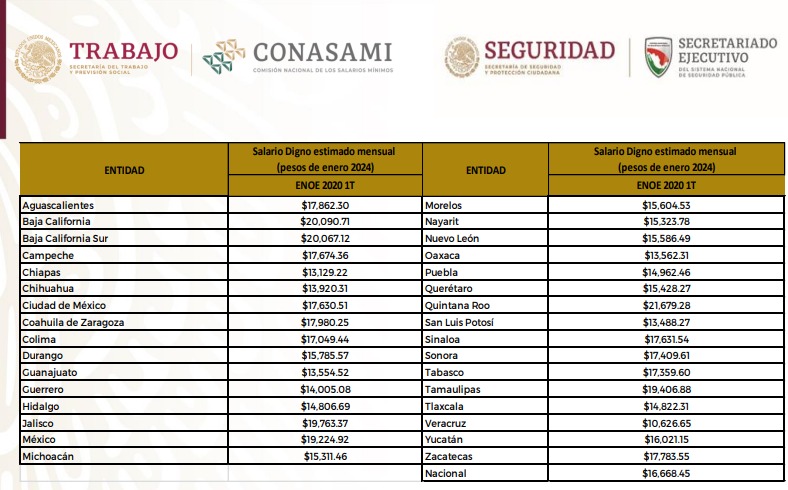 “La Comisión Nacional de Salarios Mínimos (CONASAMI), ha llevado a cabo diferentes análisis para estimar un ingreso suficiente que garantice a las y los policías, así como sus familias, una vida digna”.