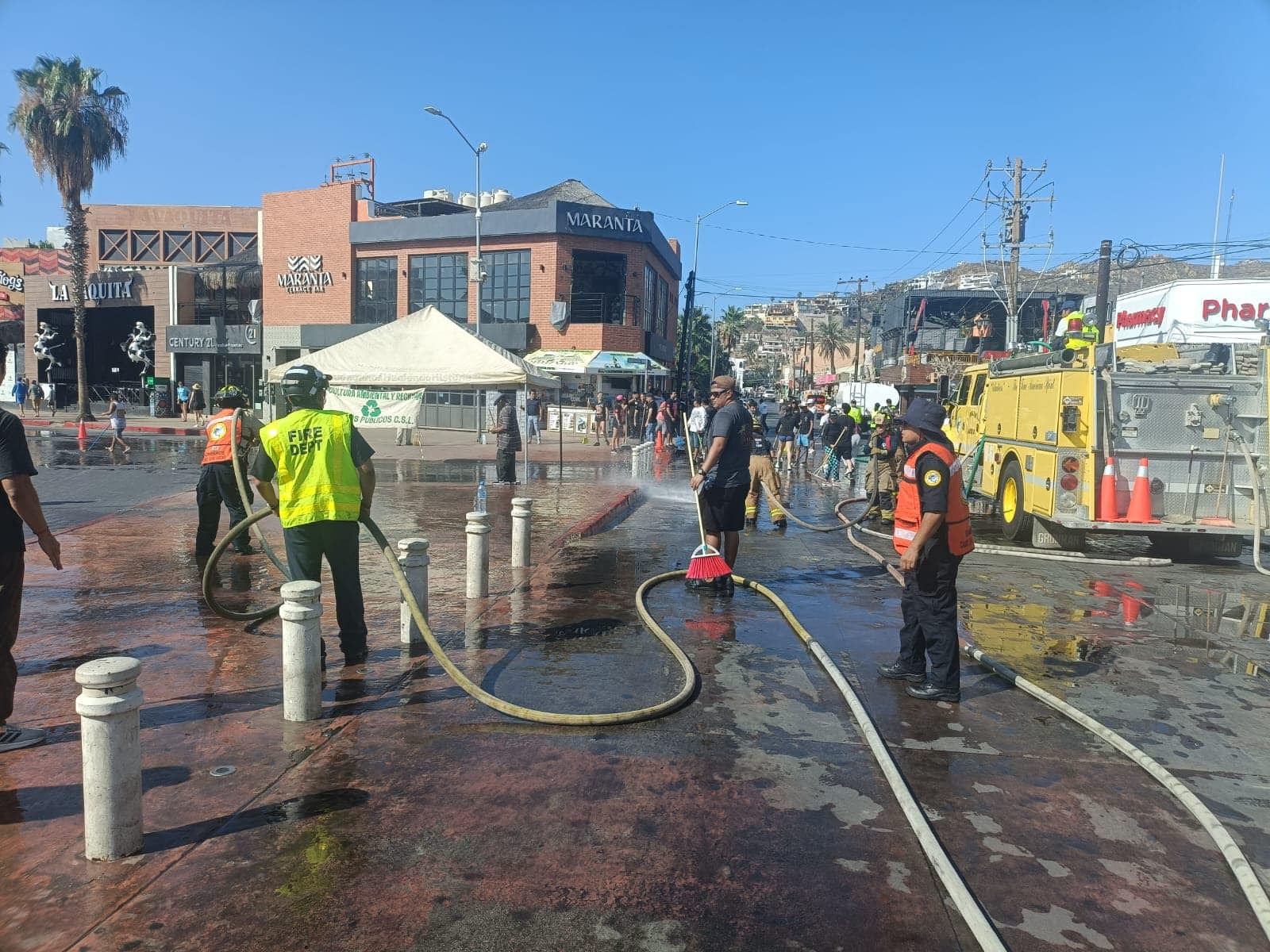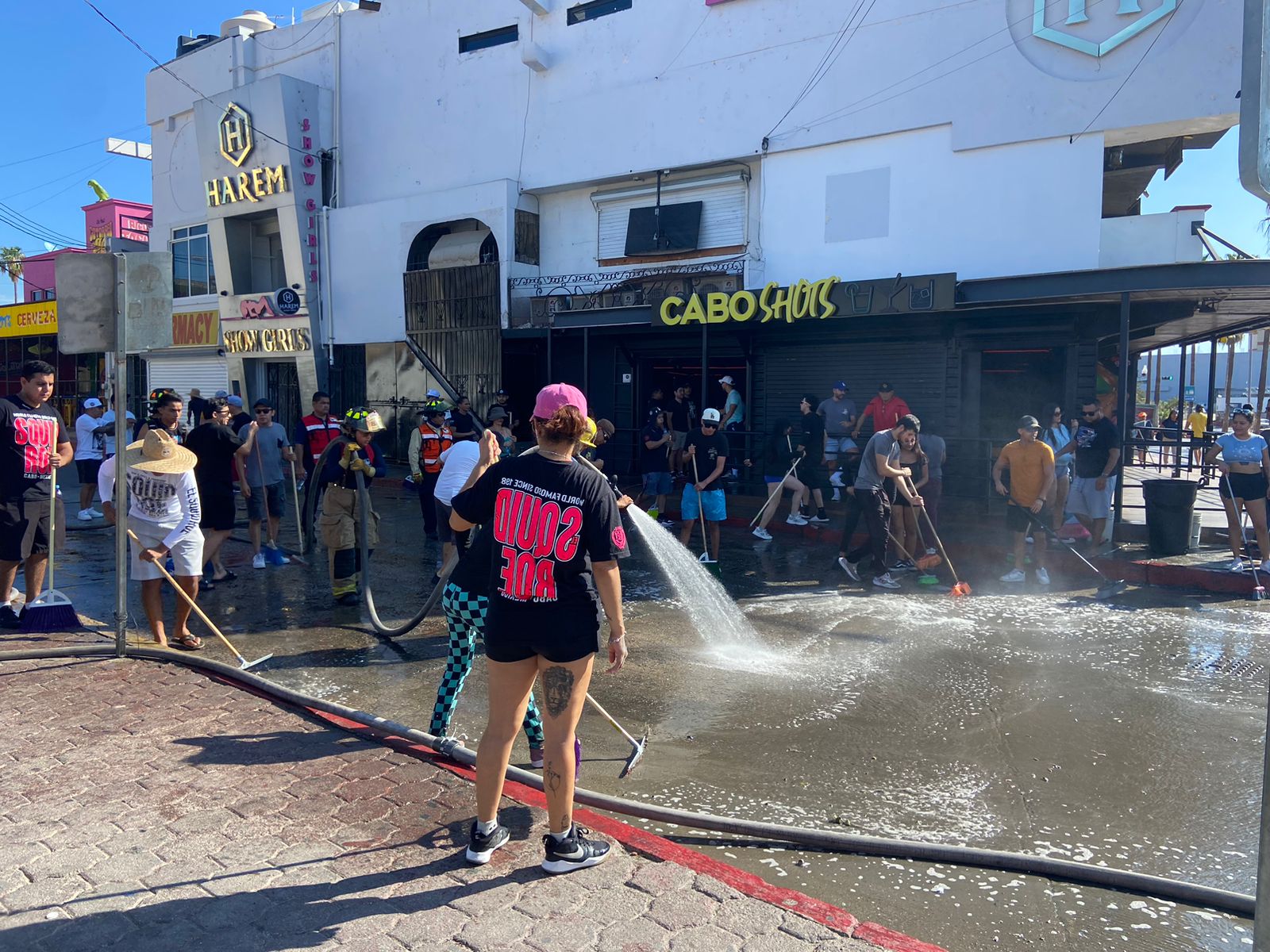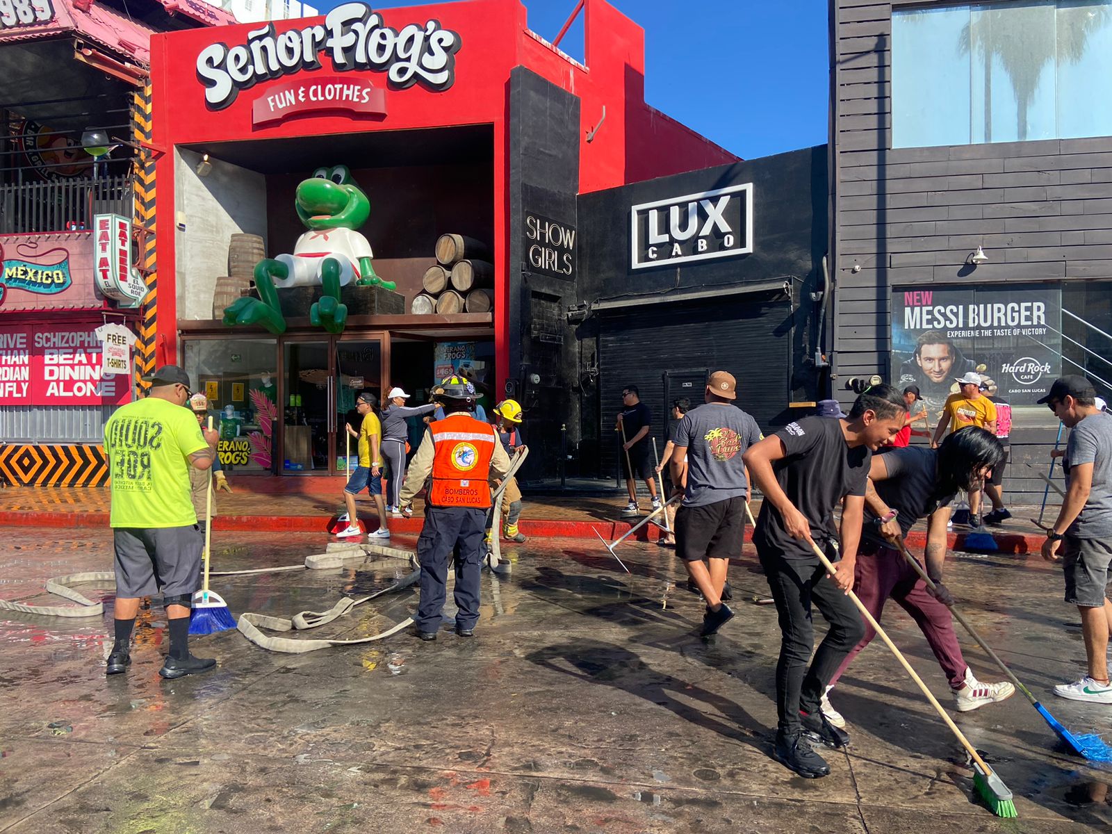 Desde las 7:30 hasta las 10 de la mañana, un grupo de más de 30 personas, entre ellos empresarios, colaboradores, bomberos voluntarios y sindicatos de trabajadores, se reunieron en la “zona dorada” de Cabo San Lucas para llevar a cabo una limpieza masiva.