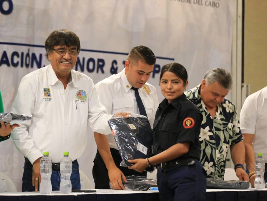 Por otra parte, el comandante del Departamento de Bomberos Omar Barrera Núñez, agradeció la presencia de las autoridades y familiares, al tiempo que enalteció a los bomberos que acudieron al evento: “nos engalana que todas las autoridades estén aquí, pero quiero recalcarles que este día es para las y los 80 bomberos que están presentes; hoy se marcó en la historia que el Departamento de Bomberos de San José del Cabo tiene un desarrollo potencial en el municipio, creciendo hasta la zona norte, al contar ya con 5 estaciones activas 24/7 gracias al apoyo del Ayuntamiento que preside Oscar Leggs Castro”, puntualizó.