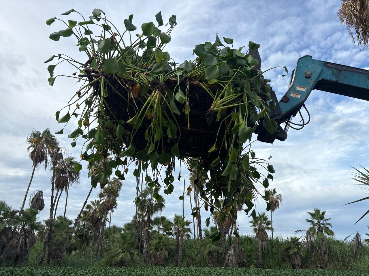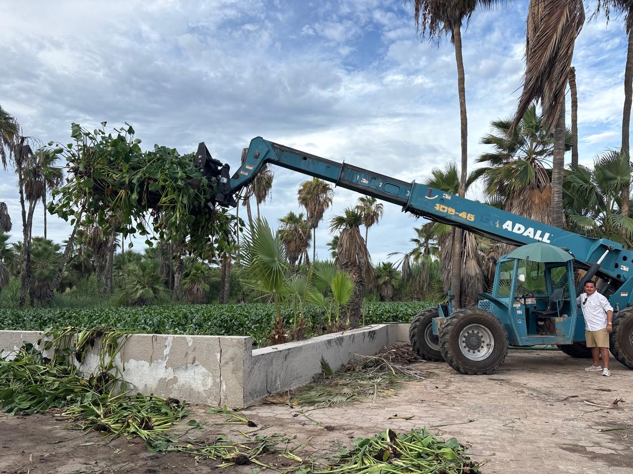 El director de Recursos Humanos y Vida Silvestre, Jorge Armando López Espinoza, explicó en entrevista para HOY BCS que iniciaron desde el 23 de agosto con un programa permanente para el retiro del lirio acuático, el cual se hará por medio de una “Telehandler”, una máquina pesada máquina de elevación y manejo de materiales con un brazo telescópico que puede extenderse hacia adelante y hacia arriba, que se utiliza en la agricultura.
