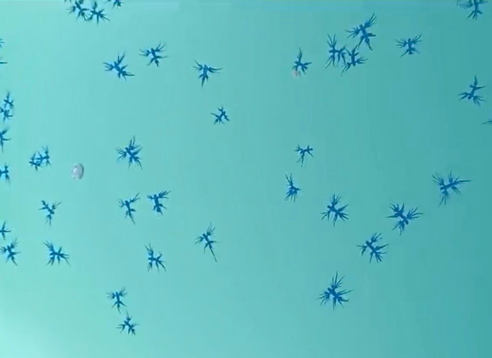 Como parte de las acciones que se realizan en conjunto con la Red de Protección de la Tortuga Marina, en un recorrido se observó esta especie de molusco de color azul que habita en mar abierto.