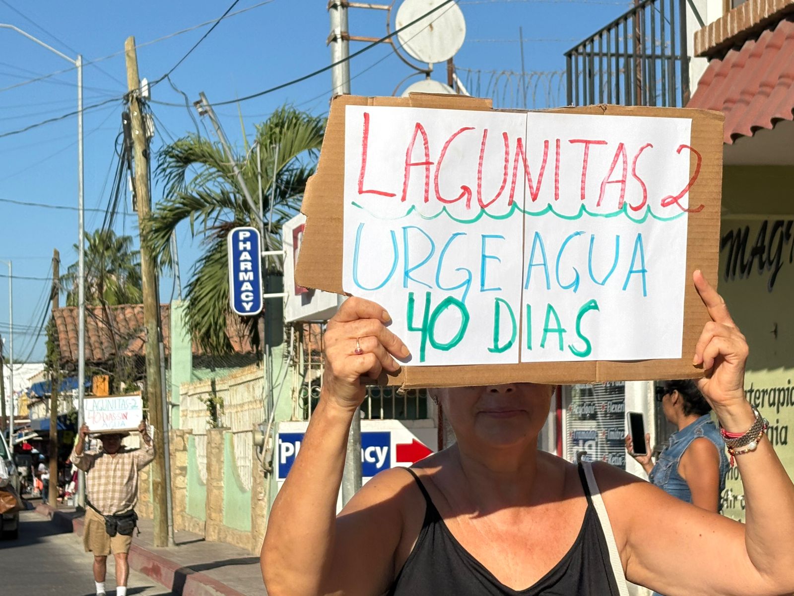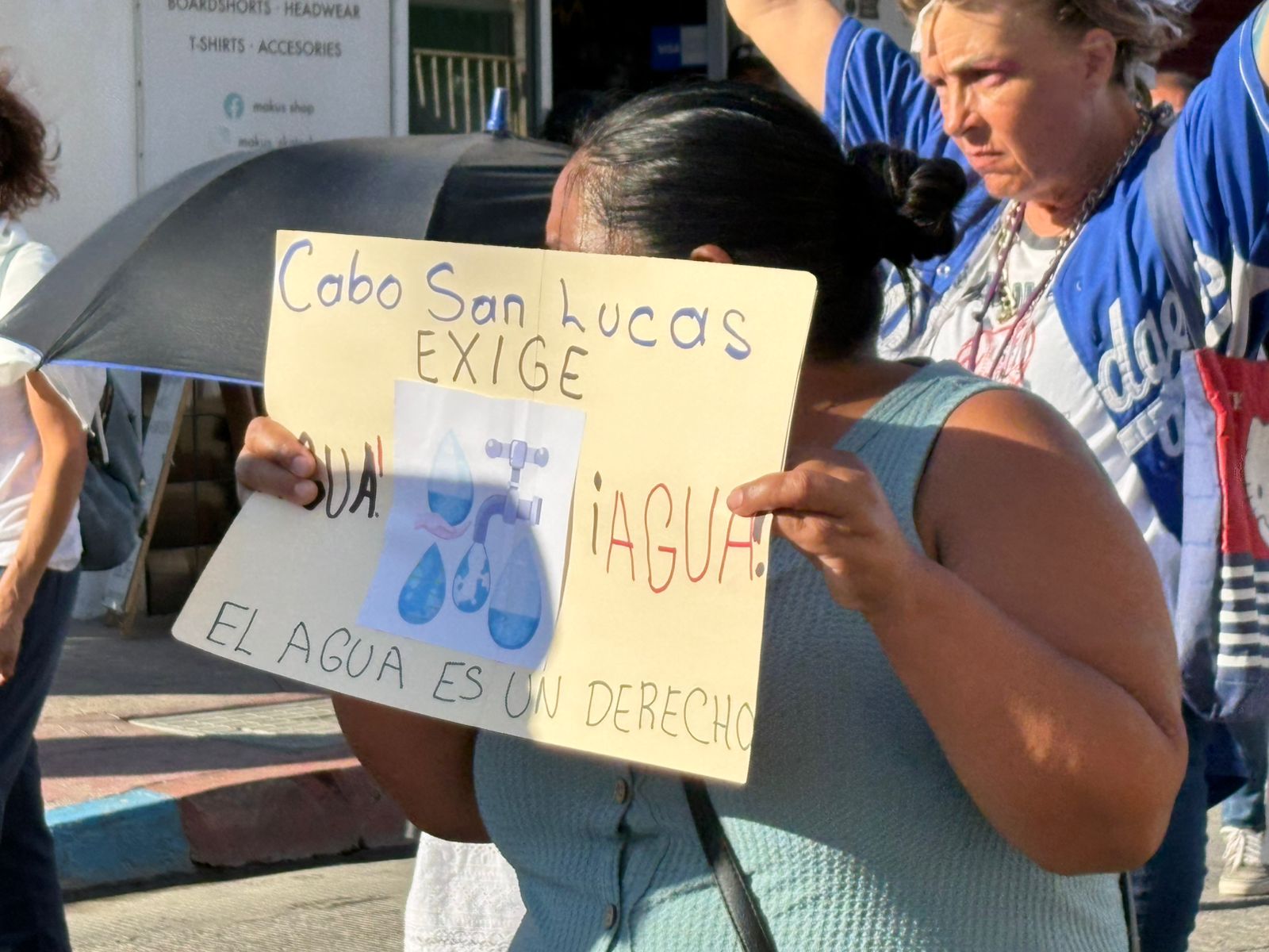 “El agua no es un negocio, el agua es un derecho”, “Basta de fraudes, no mas concesiones a pipas”, “En Cabo San Lucas el uso del agua para consumo personal y doméstico debe ser garantizado por el Gobierno”, “Cabo San Lucas exige agua”, “Necesitamos agua, no solo una vez al mes”.