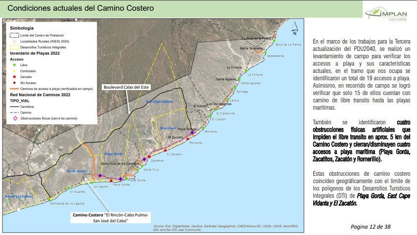 (Lo que se tiene en los hechos según informes documentados por el propio Instituto Municipal de Planeación es un tramo pavimentado y el cierre y obstrucción de 5 km de camino costero precisamente en los predios de los desarrollos, lo cual expliqué ampliamente en este espacio de opinión el 5 de febrero de este año https://hoybcs.com/camino-costero-y-acceso-a-playas-peras-y-manzanas/ ).