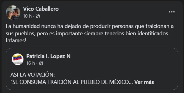 Las reacciones también se replicaron entre otros perfiles de Morena en el estado. El director del Instituto Sudcaliforniano de Cultura, Vico Cabellero, escribió en redes: “La humanidad nunca ha dejado de producir personas que traicionan a sus pueblos, pero es importante siempre tenerlos bien identificados… Infames!”.