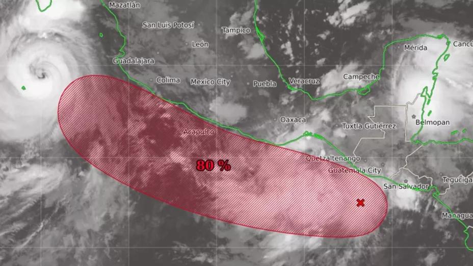 Se desplaza hacia el oeste-noroeste a una velocidad de entre 16 y 24 kilómetros por hora (km/h), la Conagua anticipa que podría convertirse en un ciclón tropical para este fin de semana.