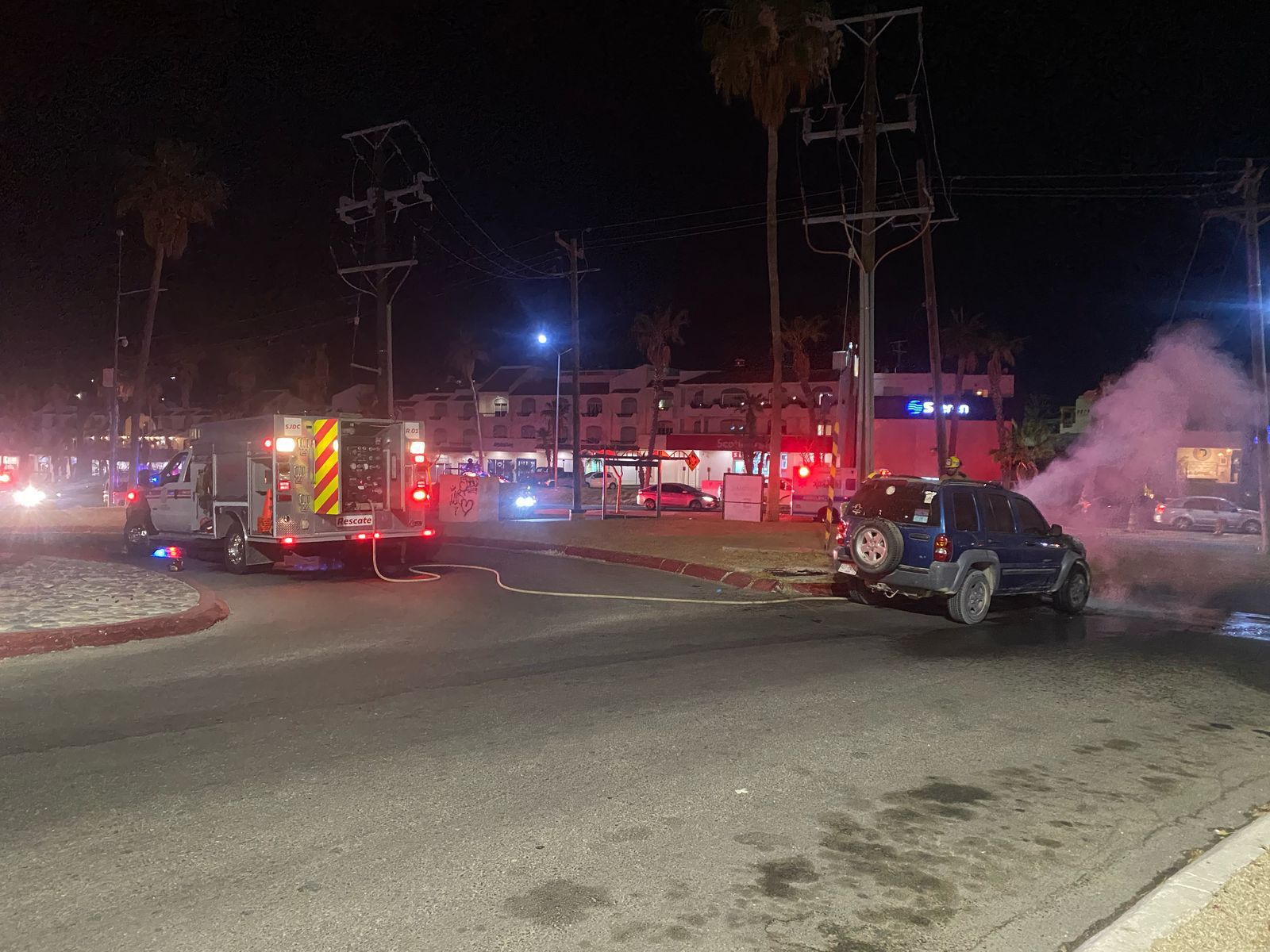 Sin embargo, a diferencia de los otros sucesos el Departamento de Bomberos de San José del Cabo confirmó a HOY BCS que las causas que derivado del incendio del vehículo Jeep Liberty color azul fueron provocadas por una falla mecánica.