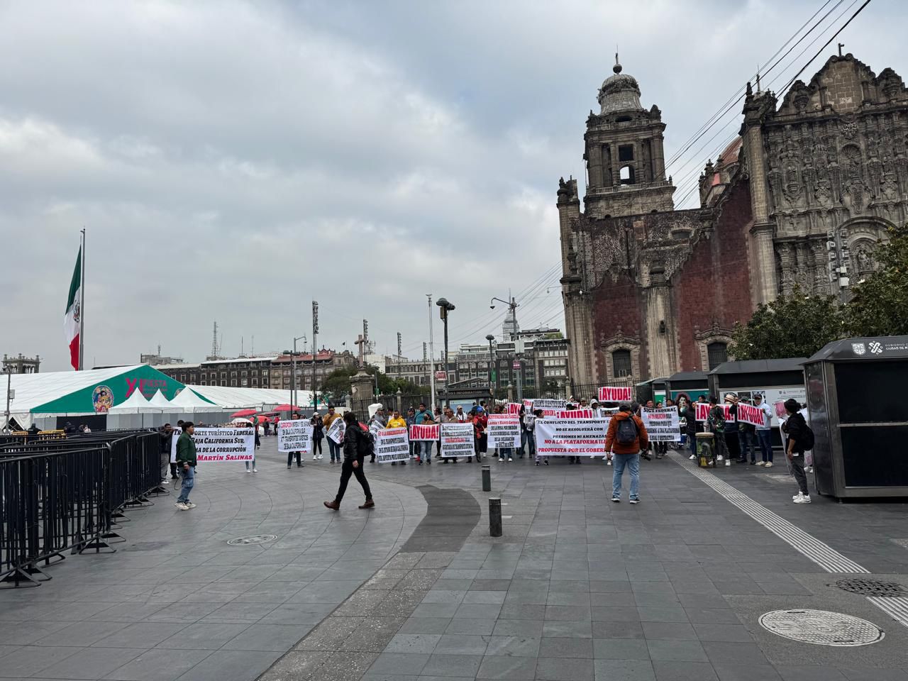 Un grupo de aproximadamente 100 personas lideradas por conductores de transportadoras turísticas que operan en Los Cabos se manifestaron desde tempranas horas de este 19 de agosto en el Zócalo de la Ciudad de México.