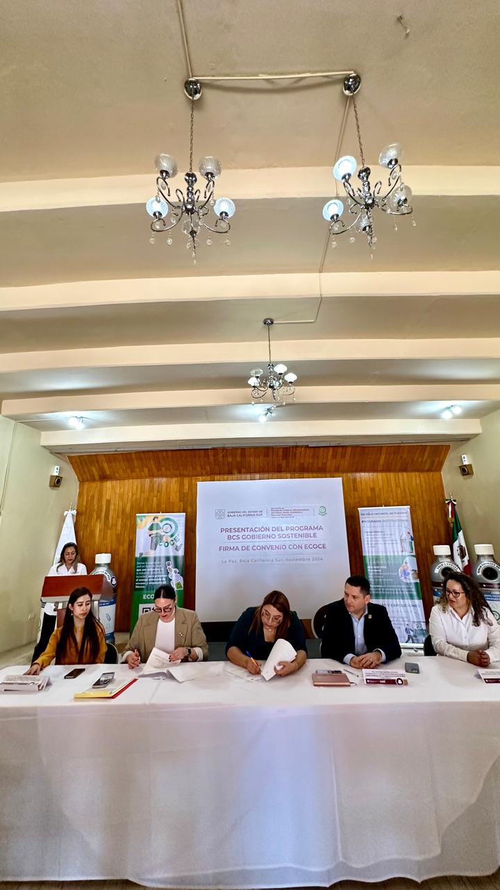 La Paz, Baja California Sur, a 04 de noviembre de 2024.- Carolina Armenta Cervantes, titular de la Secretaría de Planeación Urbana, Infraestructura, Movilidad, Medio Ambiente y Recursos Naturales en el Estado de Baja California Sur (SEPUIMM), presidió hoy la firma de un convenio de colaboración con la asociación civil sin fines de lucro ECOCE (Ecología y Compromiso Empresarial), con la finalidad de fomentar la separación de residuos de envases y empaques reciclables, e impulsar la educación ambiental en las instalaciones de la propia Secretaría.