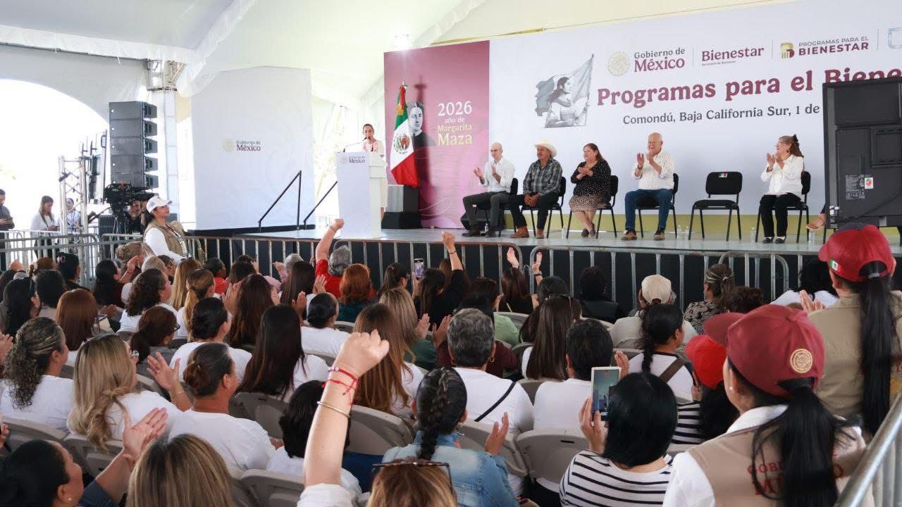 En su gira de trabajo por Baja California Sur, la presidenta de la República, Claudia Sheinbaum Pardo, encabezó un acto en Ciudad Constitución donde destacó los avances sociales alcanzados en los últimos años y anunció nuevos apoyos para la entidad.