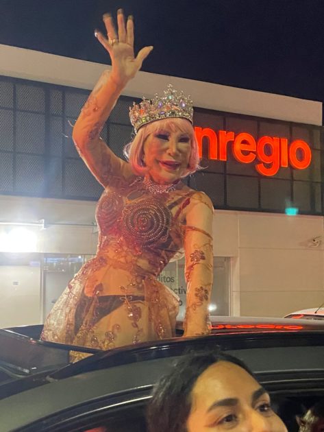 Al final del recorrido por la principal vialidad de Cabo San Lucas, en uno de los carros que desfilaron se encontraba la actriz y vedette Lyn May, un ícono en el “Cine de ficheras” donde es conocida por el sobrenombre “La diosa del amor”, quien más tarde se presentó en un conocido club LGBT en Los Cabos.