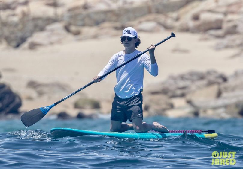 El actor estadounidense fue fotografiado disfrutando de un día en la playa, haciendo paddle board con su hermano.