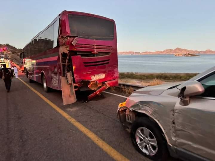 Esta tarde se registró un impactante accidente en la carretera Transpeninsular a la altura de la cuesta de El Juncalito, donde un camión de un hotel que habría participado en una carambola con un tráiler, un camión de pasajeros y una camioneta, cayó al fondo de un barranco.
