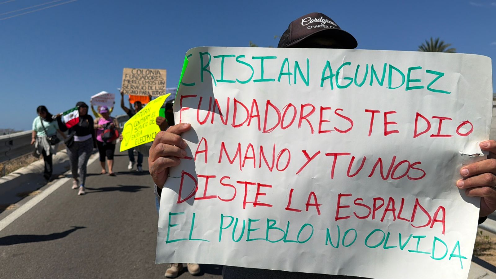 Habitantes de la colonia Fundadores en Cabo San Lucas, salieron a las calles para visibilizar la falta de servicios básicos que enfrentan desde hace años. Más de 50 personas participaron en una marcha que partió del libramiento de cuota y avanzó hasta el puente Punta Ballena, ocupando uno de los carriles con dirección a San José del Cabo.