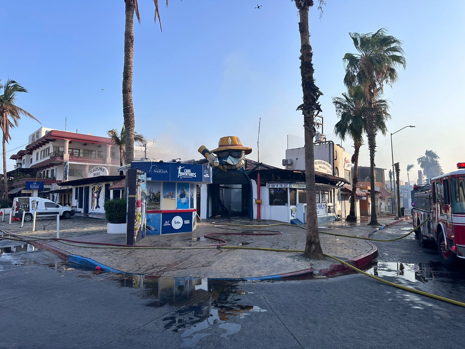 A las 5:50 de la madrugada se reportó a las unidades de emergencia el incendio del popular sitio ubicado Boulevard Marina. Todas las unidades disponibles del Cuerpo de Bomberos de Cabo San Lucas acudieron al sitio para combatir el incendio.
