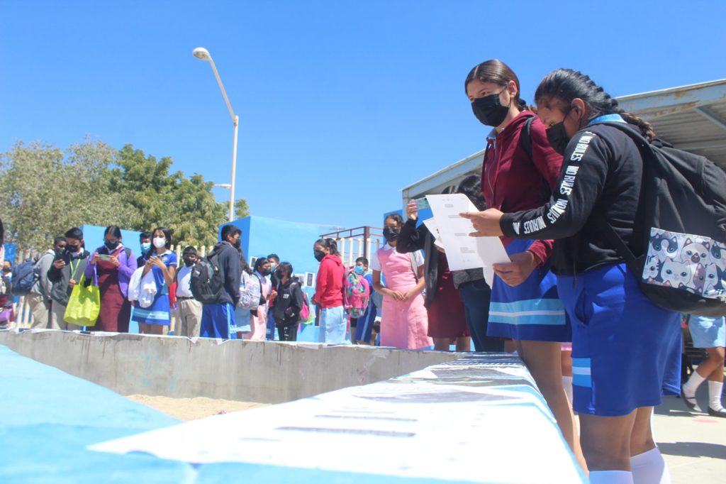 Con sirenas de megáfonos, una fila de chicas con pancartas y encubiertas de los rostros y vestidas de negro con pañuelos verdes y morados llegaron a la escuela secundaria general “Raúl Enrique Guerrero Montaños” No.35 en Cabo San Lucas, para exhibir el acoso y abuso sexual que han sufrido dentro del plantel educativo.